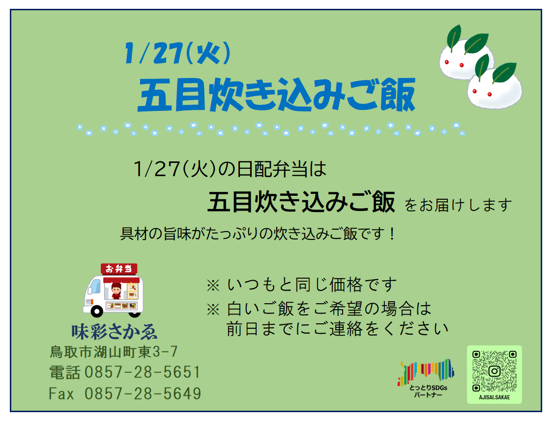 1/27(火)「五目炊き込みご飯」のお知らせです!