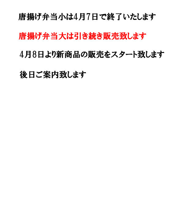 唐揚げ弁当小 販売終了